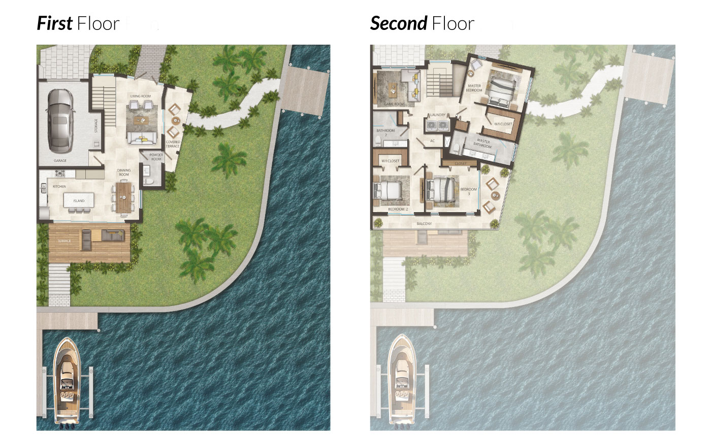 3 Bedrooms – 2.5 Bathrooms / Positioned at the intersection of two canals / Private waterfront deck overlooking the Rubicon Canal / Most private model with only one shared wall / Expansive views and premium location within the project